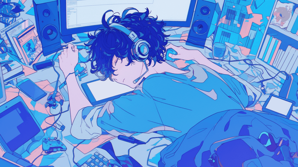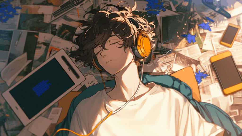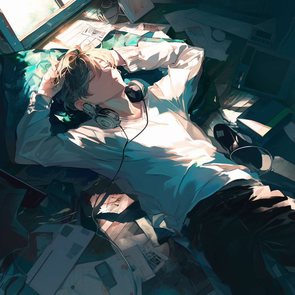 そんなわけで(?)今日はMidjournyにて、無気力な男の子のイラストを作成してみました♪(´▽`)